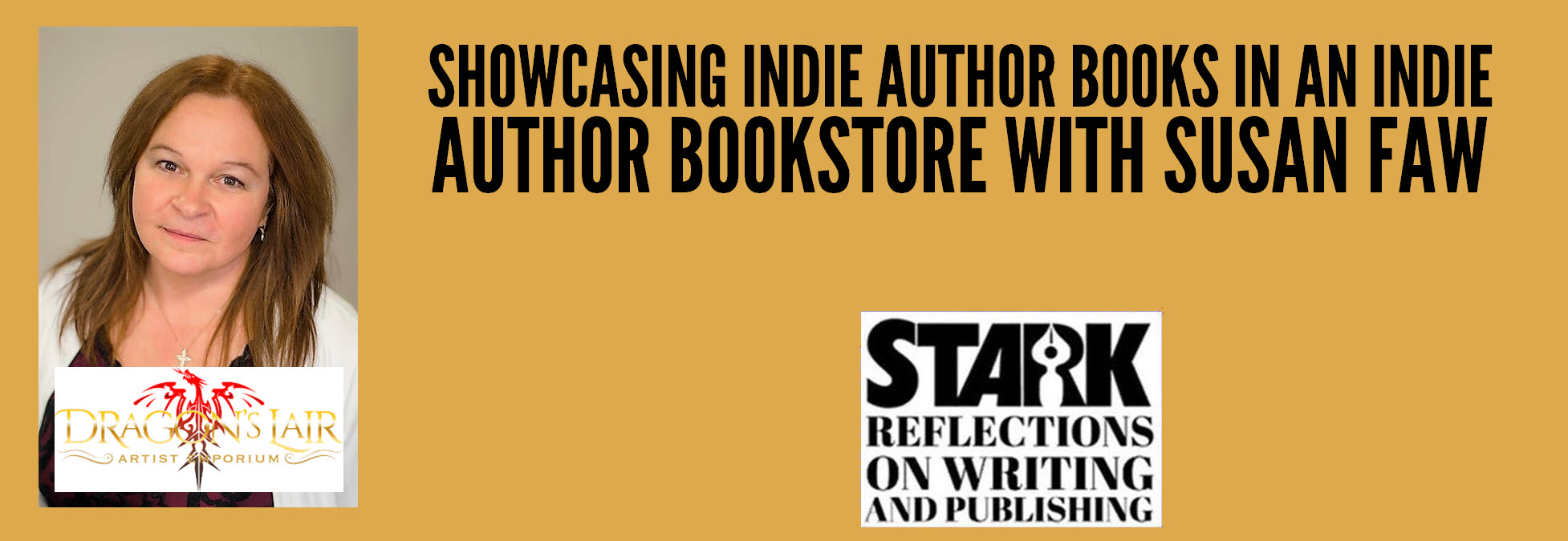 https://traffic.libsyn.com/secure/markleslie/StarkReflections_EP193_SusanDawIndieBookstore.mp3Podcast: Play in new window | DownloadSubscribe: Apple Podcasts | RSSIn this episode Mark interviews author Susan Faw who is also the owner and founder of Dragon’s Lair Artist Emporium, a physical bookstore in Norther Ontario that showcases books from indie authors. Prior to the interview, Mark shares a personal update, comments from recent episodes, … Continue reading Episode 193 – Showcasing Indie Authors in an Indie Bookstore with Susan Faw